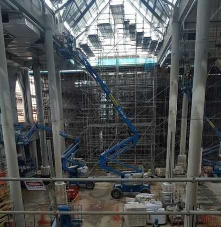 Tim proyek ini kemudian memutuskan untuk menyingkirkan semua scaffolding dan mengandalkan efisiensi mesin-mesin Genie MEWP untuk menghemat biaya mereka secara signifikan.