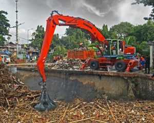 Proses bongkar/muat batu bara di kapal tongkang, penanganan metal scrap hingga pembersihan sampah di daerah aliran sungai membutuhkan aplikasi peralatan yang tepat karena kondisi medan yang menantang. Memindahkan batubara dari kapal tongkang ke mulut conveyor atau ke truk, contohnya, mengandalkan penggunaan mesin yang memiliki jangkauan panjang. Pembersihan berbagai jenis sampah di sungai juga memerlukan peralatan yang memiliki lengan yang panjang agar tidak tercebur ke dalam air.