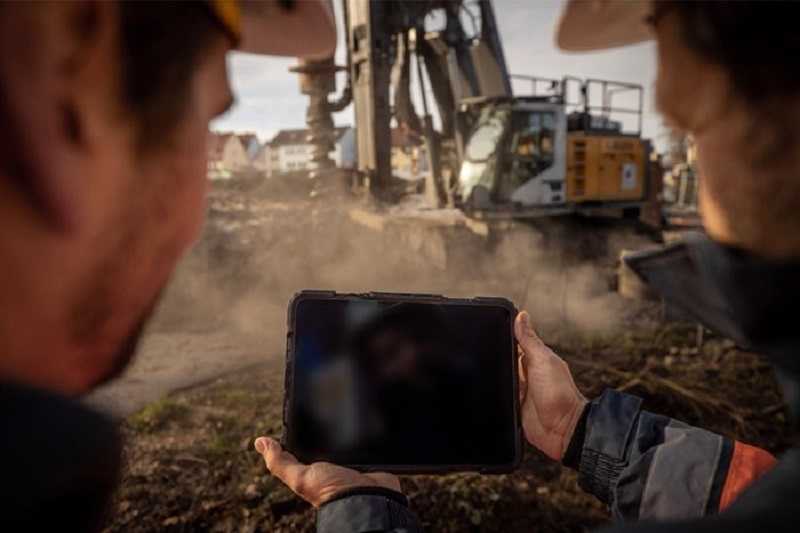 Untuk mengakses informasi dan panggilan konferensi video, Liebherr menawarkan tablet pra-instal siap pakai yang memungkinkan dokumentasi mesin digital dan unduhan data, serta pemantauan operasi jarak jauh. Namun, layanan baru ini baru tersedia untuk crawler crane, peralatan pondasi dalam dan maritime crane. (Sumber: Liebherr)
