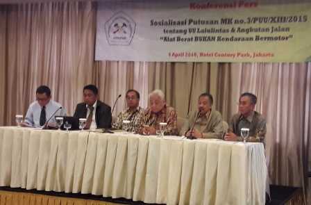 Tetapi dengan keluarnya keputusan MK tersebut, semua pajak tersebut tidak lagi memiliki dasar hukum. Untuk memperkuat posisi hukum mesin-mesin produksi ini ke depan, Ali Nurdin menyarankan ASPINDO dkk untuk memprakarsai penyusunan draf peraturan khusus yang mengatur pajak alat berat. Menurutnya, keberadaan alat berat perlu diatur dalam peraturan tersendiri mengingat populasi mesin-mesin ini sangat banyak dan merupakan peralatan kerja andalan di sektor pertambangan, konstruksi dan infrastruktur, pertanian serta perhutanan.