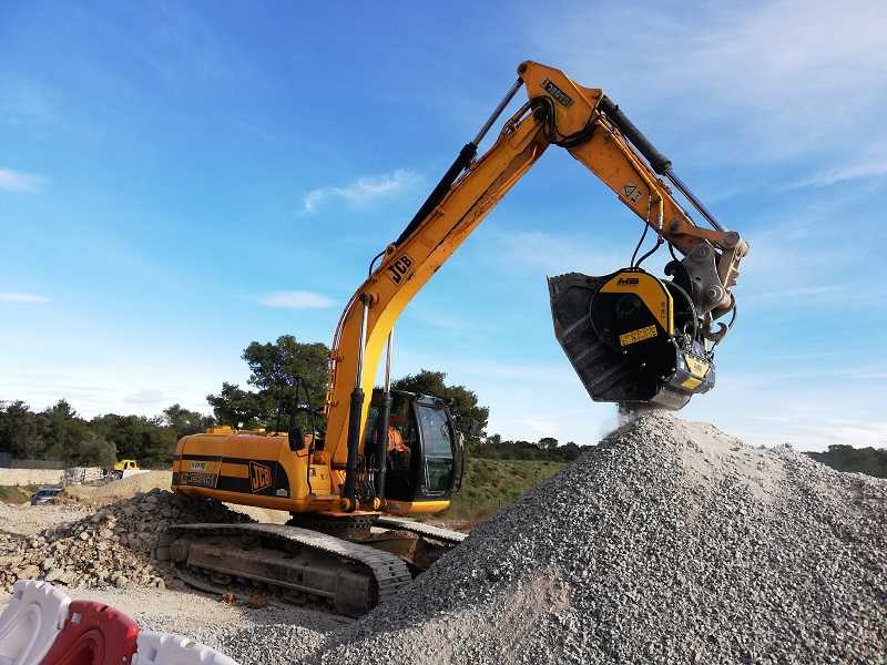 Di Nimes, Prancis, sebuah perusahaan yang membangun 745 unit rumah yang diperlukan untuk membangun kembali jalan pertanian lama untuk layanan antar-distrik dan membuat jaringan drainase untuk air hujan. Dalam konteks ini, di mana Anda perlu menggali dan menghasilkan limbah lembam dalam jumlah besar, pilihan yang diperlukan adalah peralatan MB Crusher. Mesin-mesin MB Crusher mendaur ulang semua bahan. Screening bucket MB-S18 bekerja untuk menyaring material sehingga Anda bisa mendapatkan material-material siap pake yang bagus. Sedangkan bucket crusher BF80.3 memproses bebatuan yang lebih besar. Agregat yang diperoleh segera digunakan kembali dengan menebarkannya di atas parit jaringan drainase, meniadakan semua biaya logistik dan pembuangan material serta biaya pembelian material.